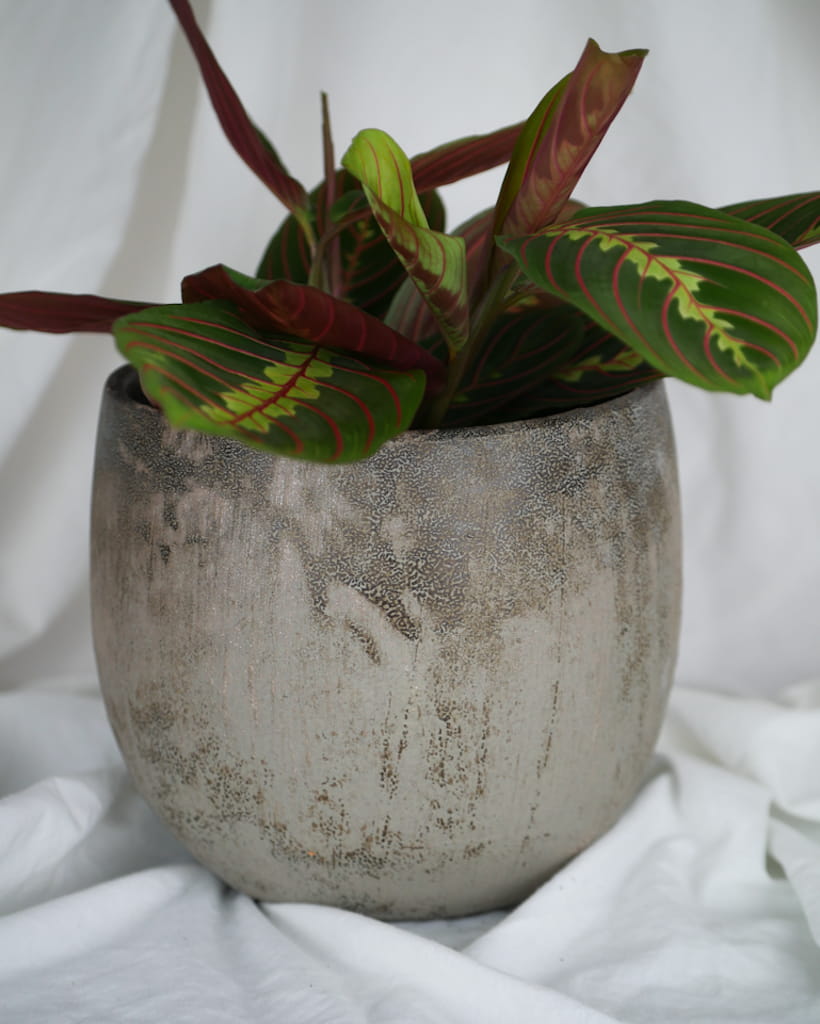Osłonka z serii Bali ma wyraźnie zaokrąglony kształt. Jest utrzymana w stonowanej kolorystyce beżowo-brązowej, dlatego będzie pasować do każdego wnętrza. Szczególnie dobrze podkreśla piękno roślin tropikalnych. Jest wykonana z betonu, co gwarantuje jakość i trwałość. Każdy egzemplarz lekko się od siebie różni rozmieszczeniem przebarwień.