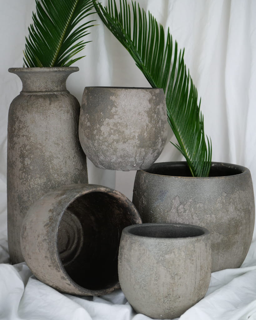 Osłonka z serii Bali ma wyraźnie zaokrąglony kształt. Jest utrzymana w stonowanej kolorystyce beżowo-brązowej, dlatego będzie pasować do każdego wnętrza. Szczególnie dobrze podkreśla piękno roślin tropikalnych. Jest wykonana z betonu, co gwarantuje jakość i trwałość. Każdy egzemplarz lekko się od siebie różni rozmieszczeniem przebarwień.