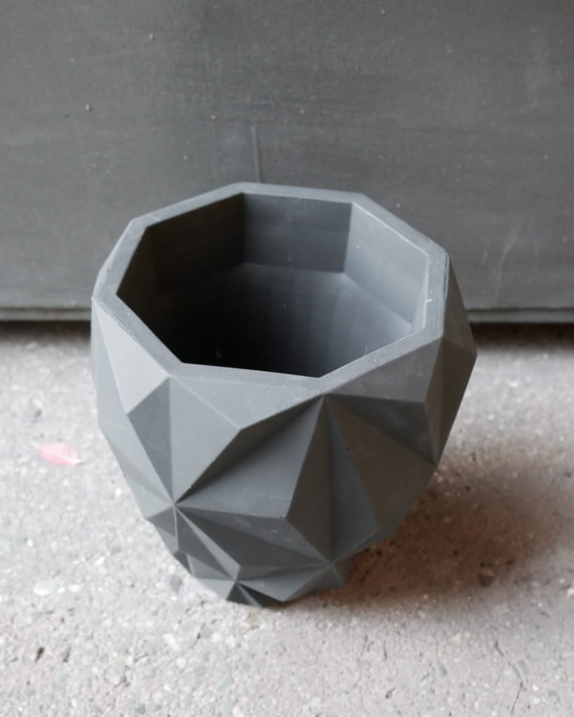 Osłonka Geometric 13cm, w kolorze czarnym matowym, jest desingerskim dodatkiem do każdego wnętrza i rośliny. Jej nieregularny, geometryczny kształt pasuje do różnych wnętrz. Osłonka z każdej strony wygląda inaczej - to zaskoczy każdego! Wykonana jest ręcznie, z wysokiej jakości betonu architektonicznego. Odporna na mróz i promienie UV.