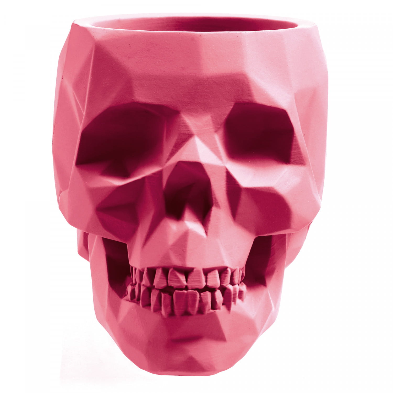 Osłonka czaszka, w kolorze różowym matowym, jest desingerskim dodatkiem do każdego wnętrza i rośliny. Jej kształt pasuje do różnych wnętrz. Osłonka w kształcie czaszki jest odważna i niespotykana - to zaskoczy każdego! Wykonana jest ręcznie, z wysokiej jakości betonu architektonicznego. Odporna na mróz i promienie UV.