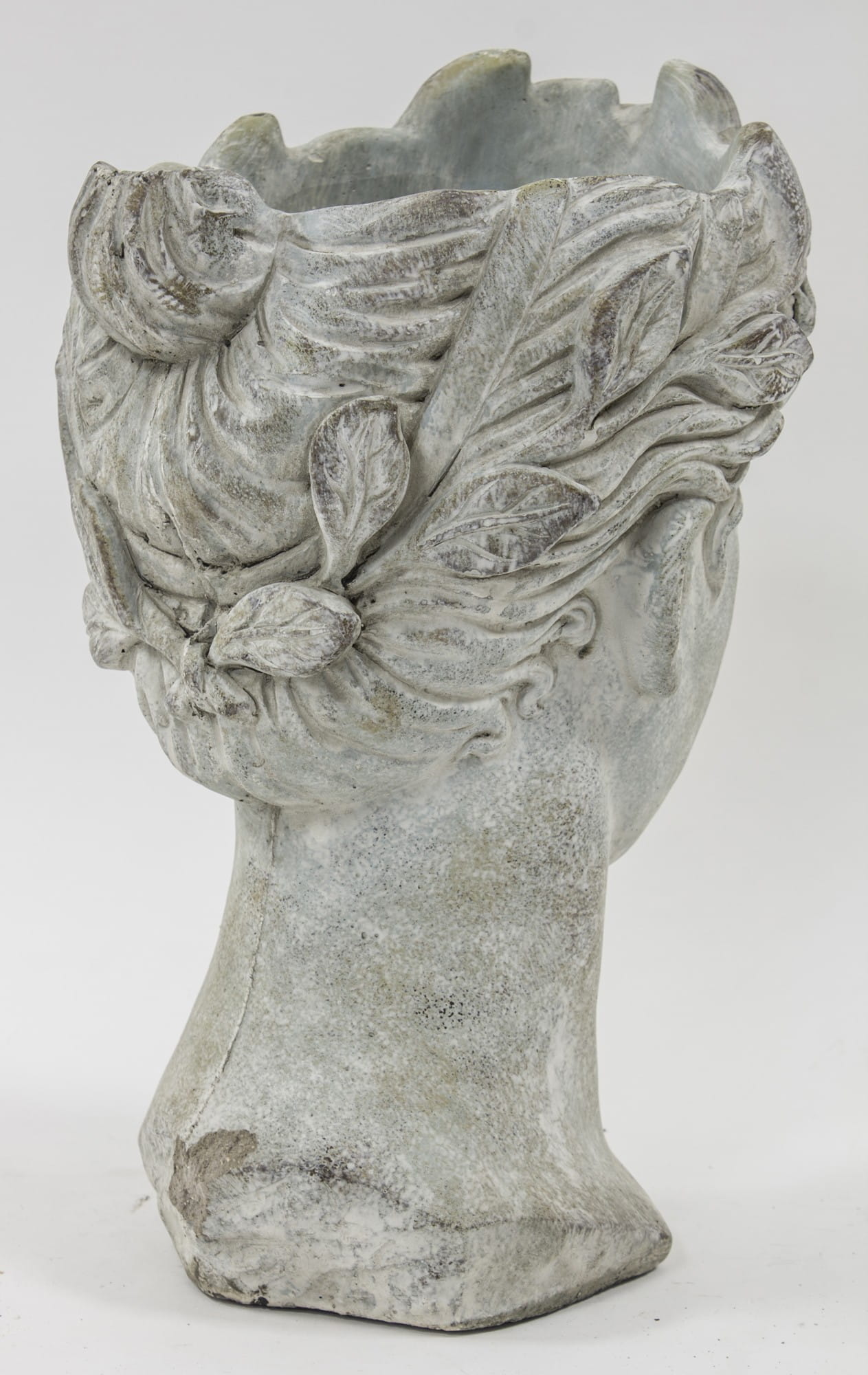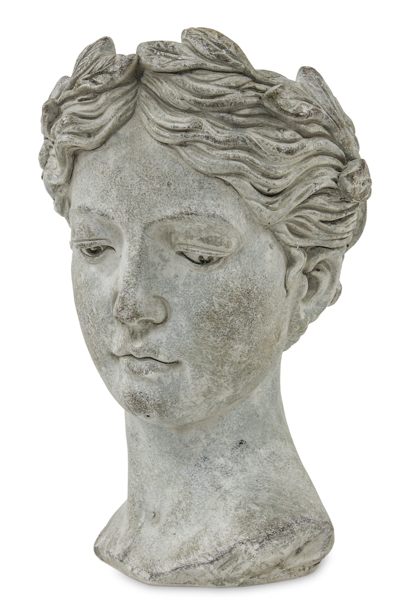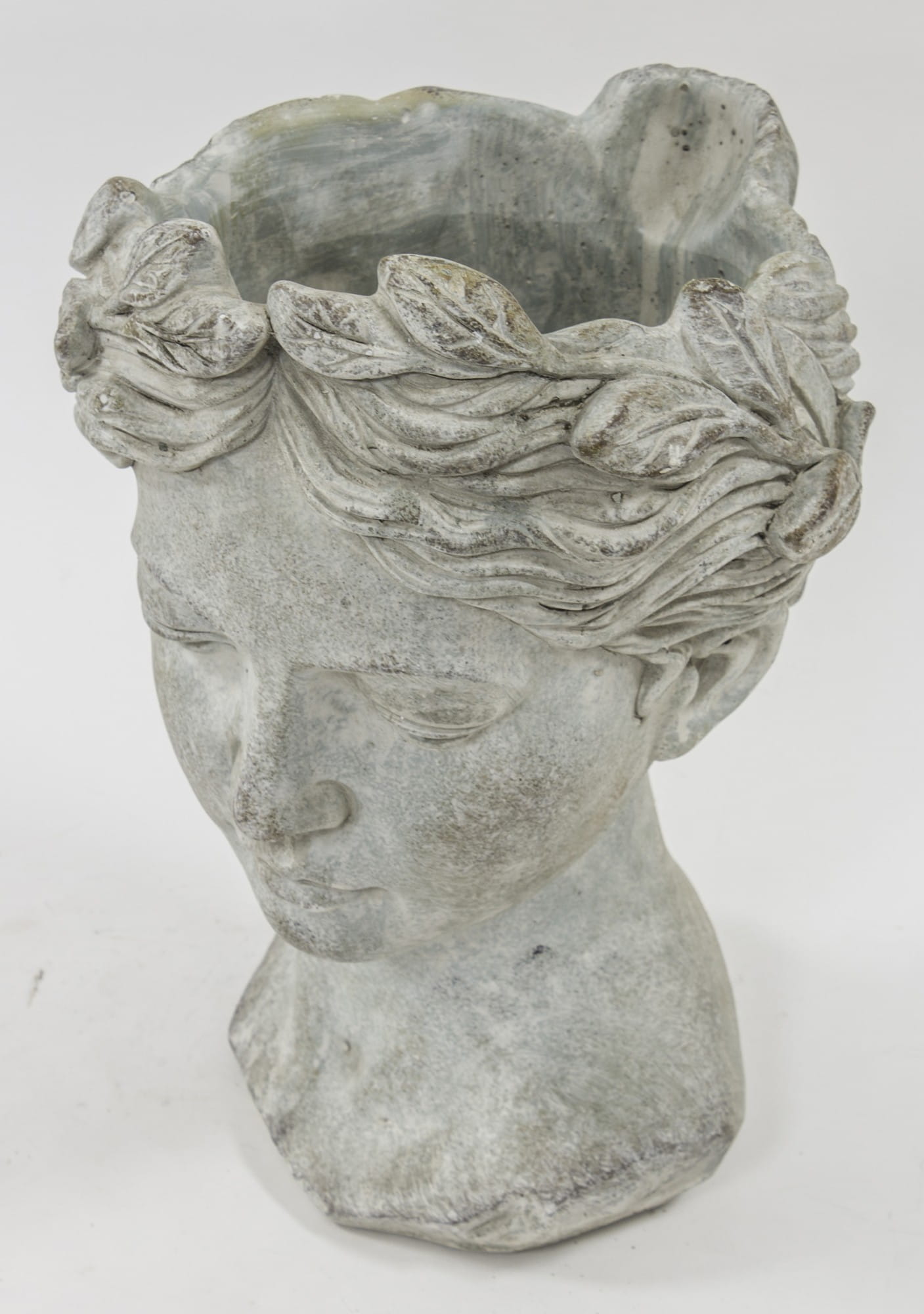 Osłonka w kształcie kobiecej głowy w stylu antycznym to niebanalny sposób na ozdobienie parapetu, balkonu, jak również ogrodu. Wygląda jak małe dzieło sztuki, ale jest też praktyczną osłonką. Idealnie sprawdzi się do ekspozycji każdej rośliny i podkreśli jej walory estetyczne. Cement, z którego wykonana jest osłonka, to materiał zapewniający niezwykłą trwałość i szlachetny wygląd. Osłonka przeznaczona jest do użytku wewnętrznego.