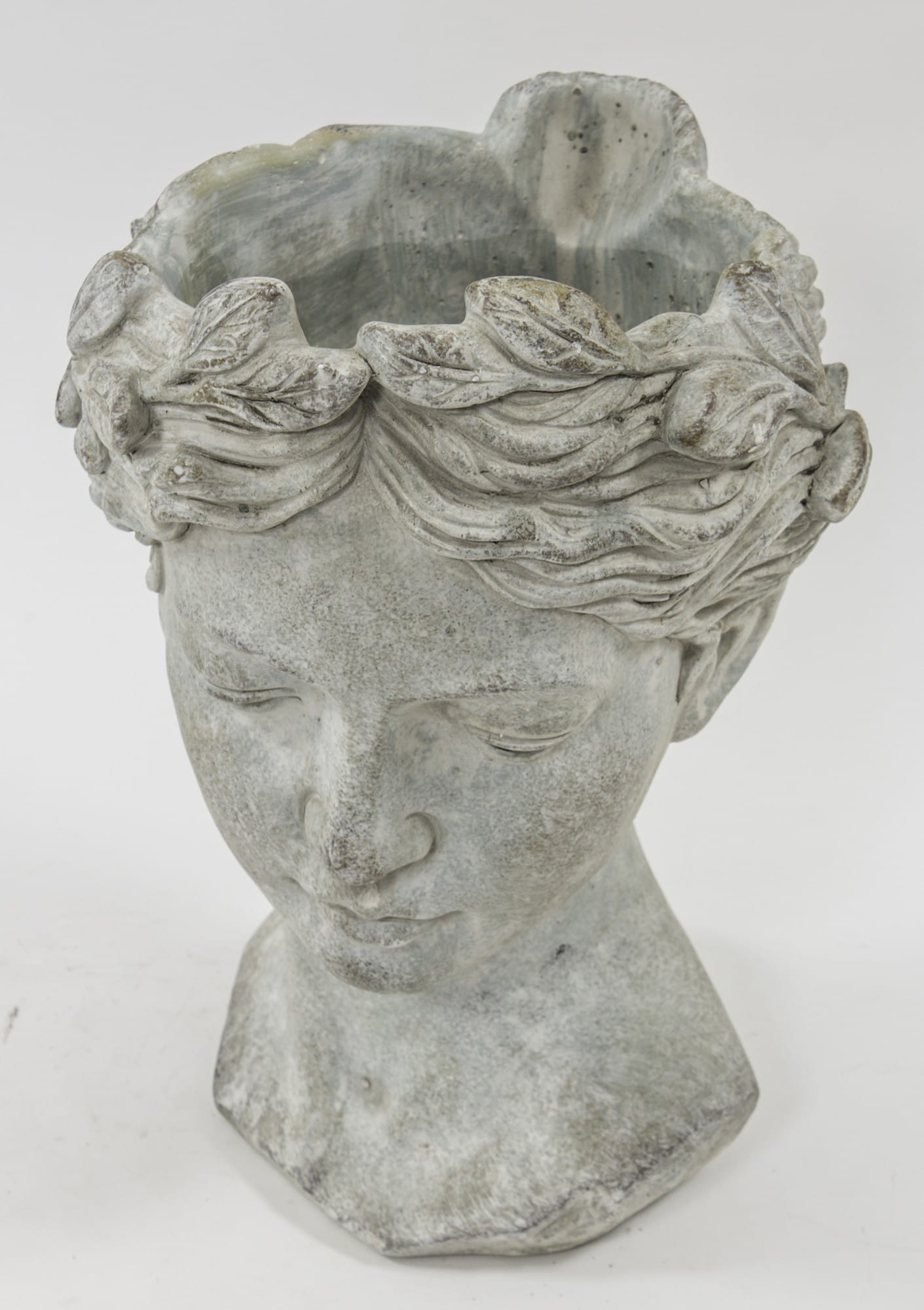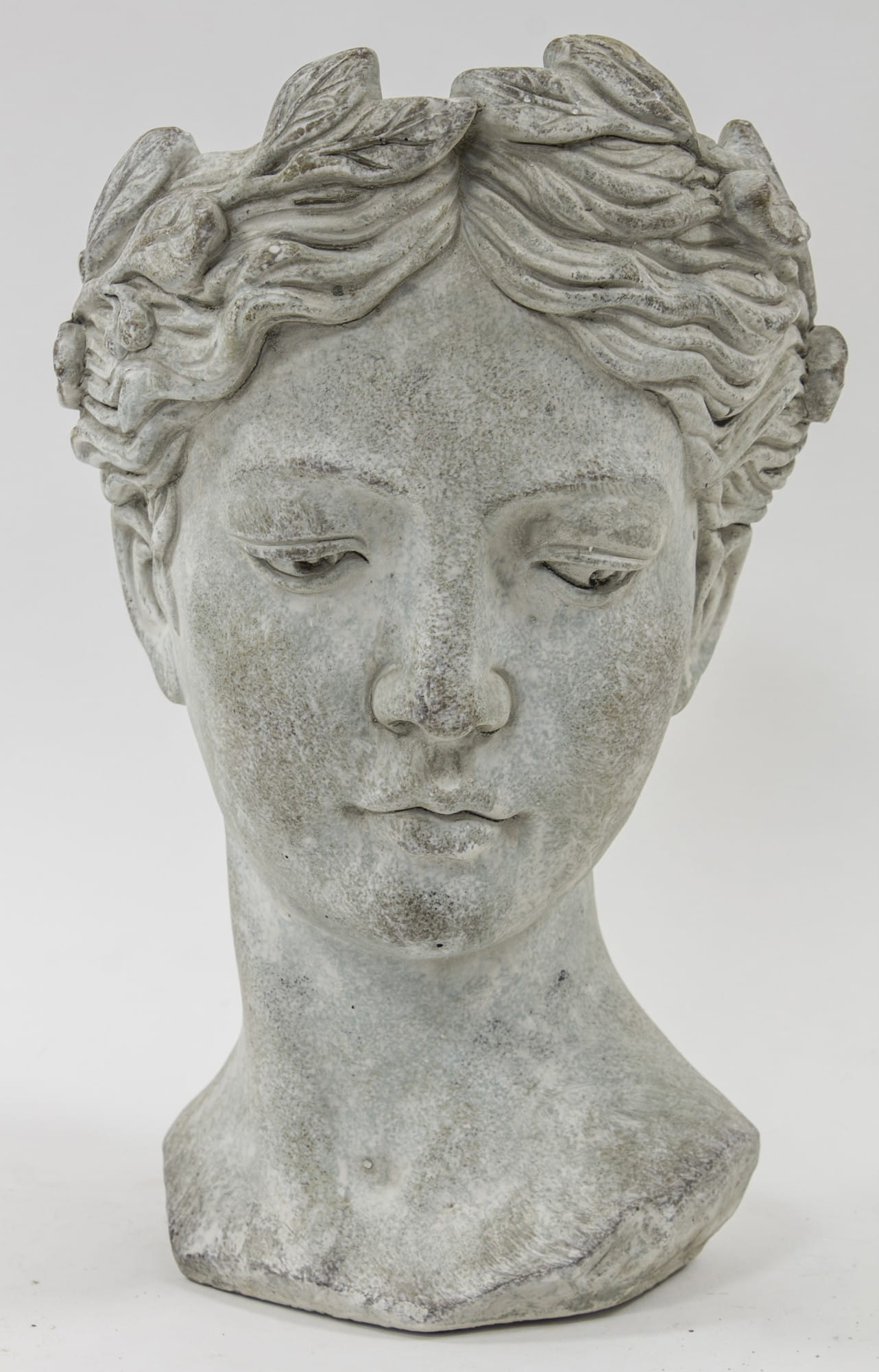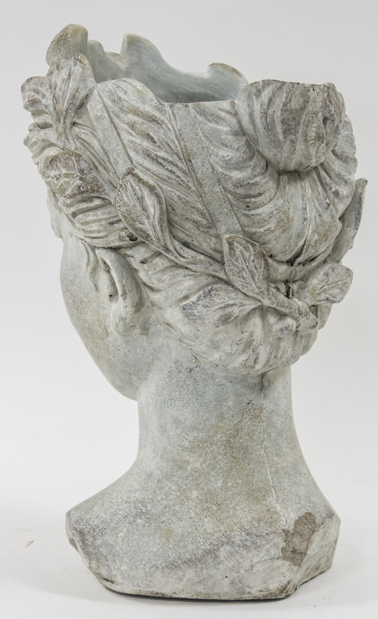 Osłonka w kształcie kobiecej głowy w stylu antycznym to niebanalny sposób na ozdobienie parapetu, balkonu, jak również ogrodu. Wygląda jak małe dzieło sztuki, ale jest też praktyczną osłonką. Idealnie sprawdzi się do ekspozycji każdej rośliny i podkreśli jej walory estetyczne. Cement, z którego wykonana jest osłonka, to materiał zapewniający niezwykłą trwałość i szlachetny wygląd. Osłonka przeznaczona jest do użytku wewnętrznego.