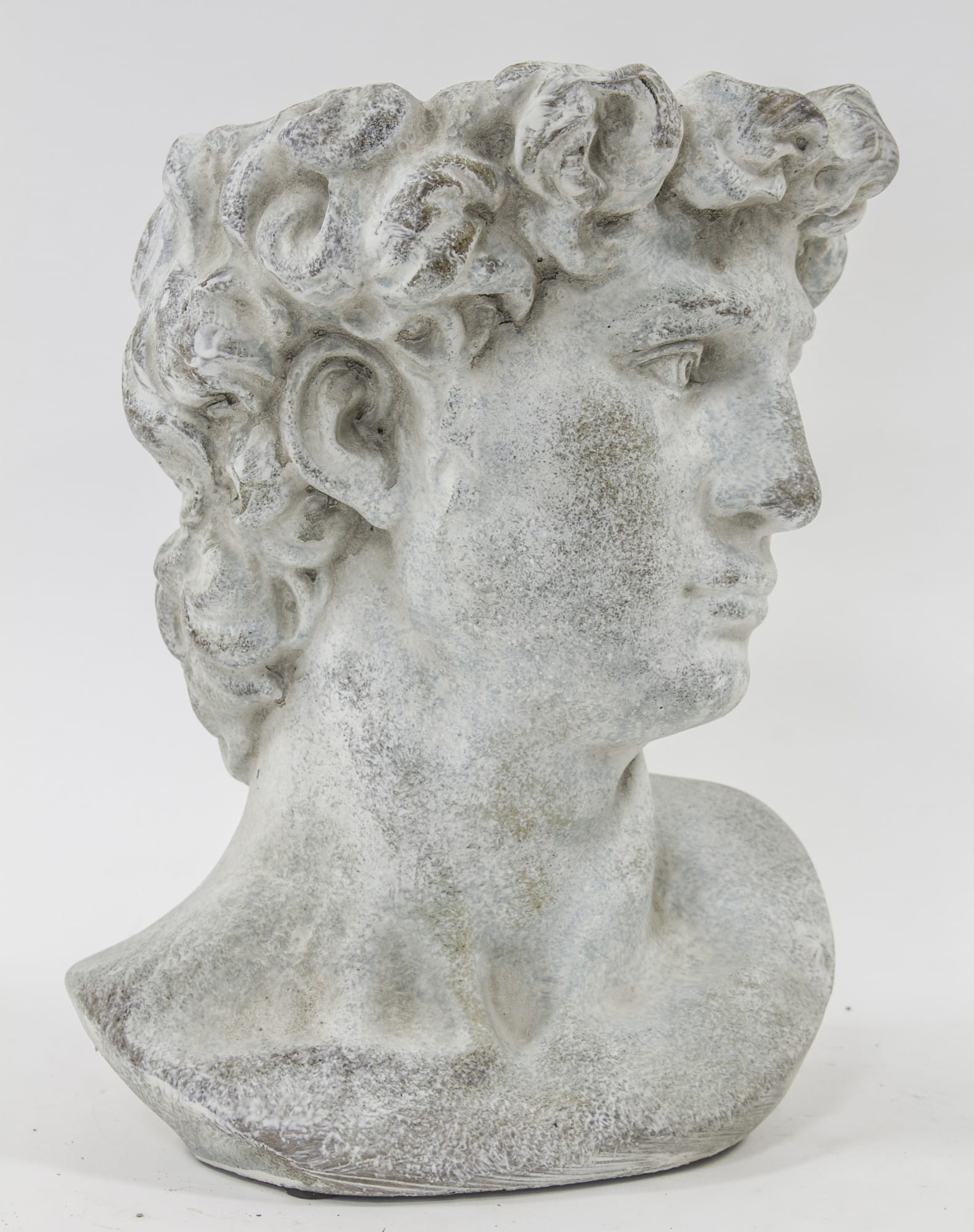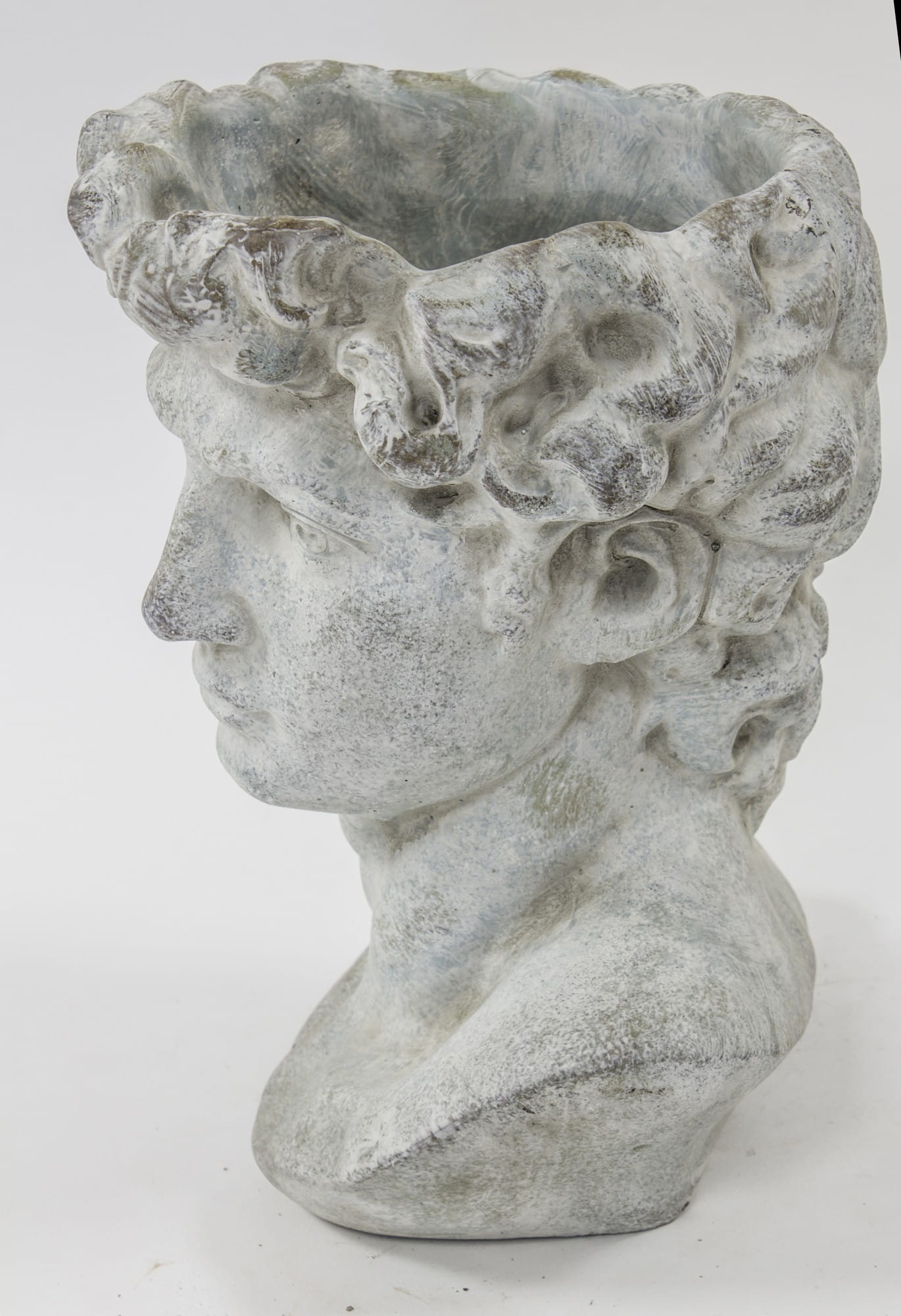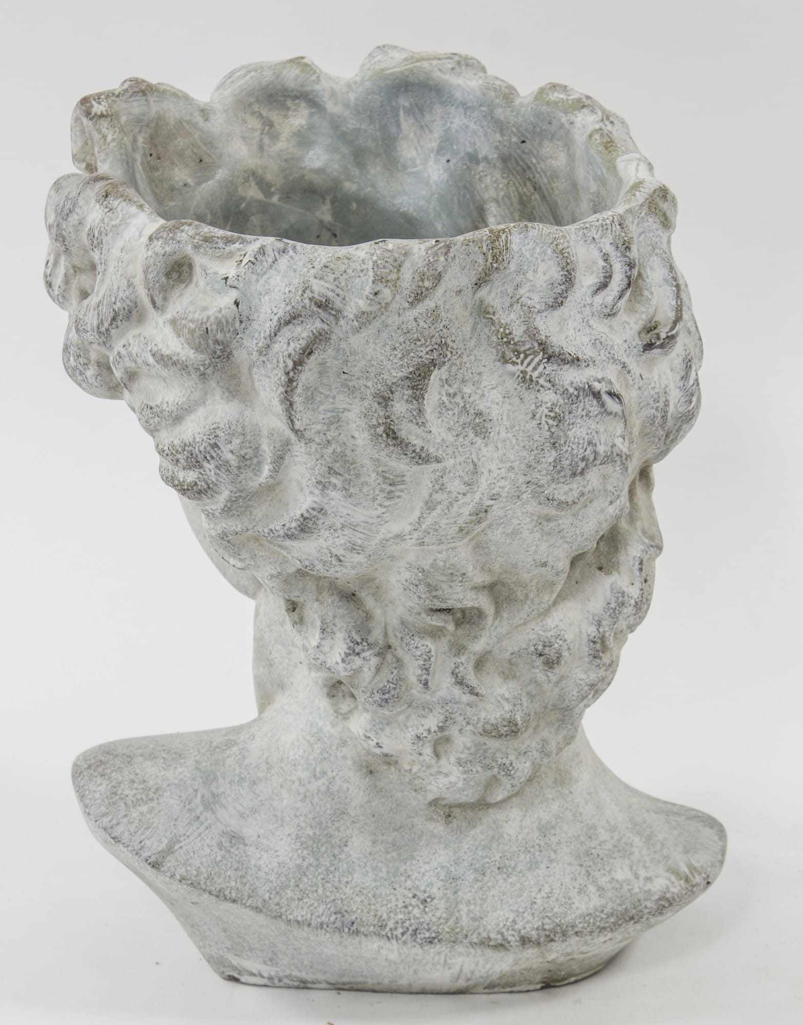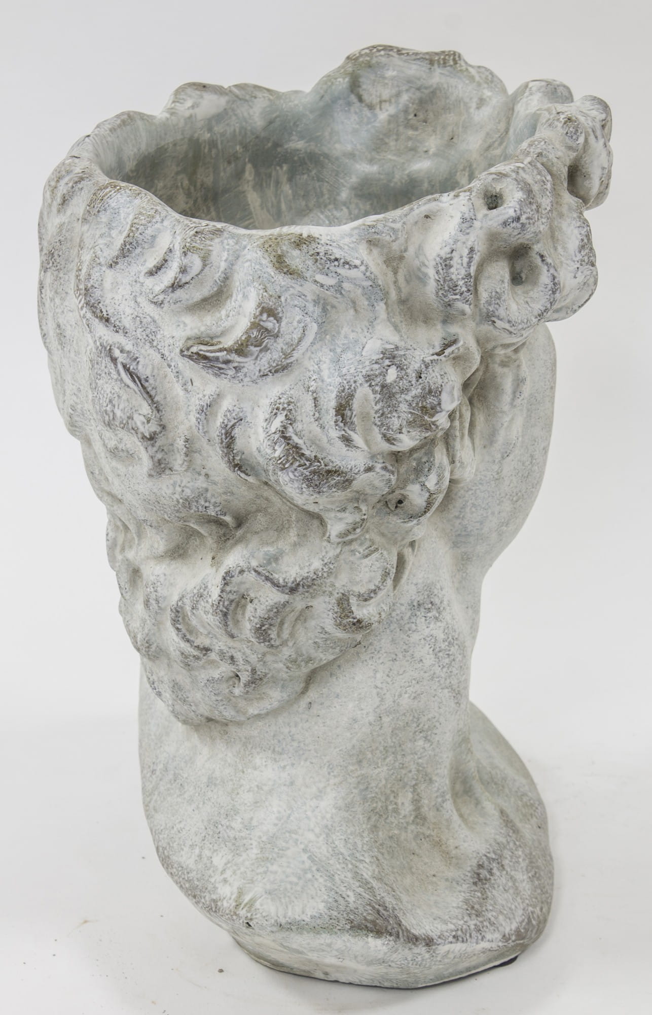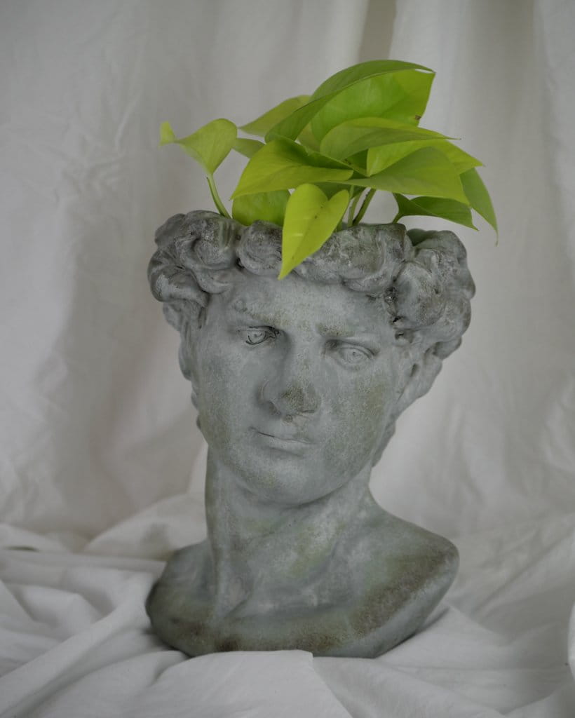 Osłonka w kształcie męskiej głowy w stylu antycznym to niebanalny sposób na ozdobienie parapetu, balkonu, jak również ogrodu. Wygląda jak małe dzieło sztuki, ale jest też praktyczną osłonką. Idealnie sprawdzi się do ekspozycji każdej rośliny i podkreśli jej walory estetyczne. Cement, z którego wykonana jest osłonka, to materiał zapewniający niezwykłą trwałość i szlachetny wygląd. Osłonka przeznaczona jest do użytku wewnętrznego.