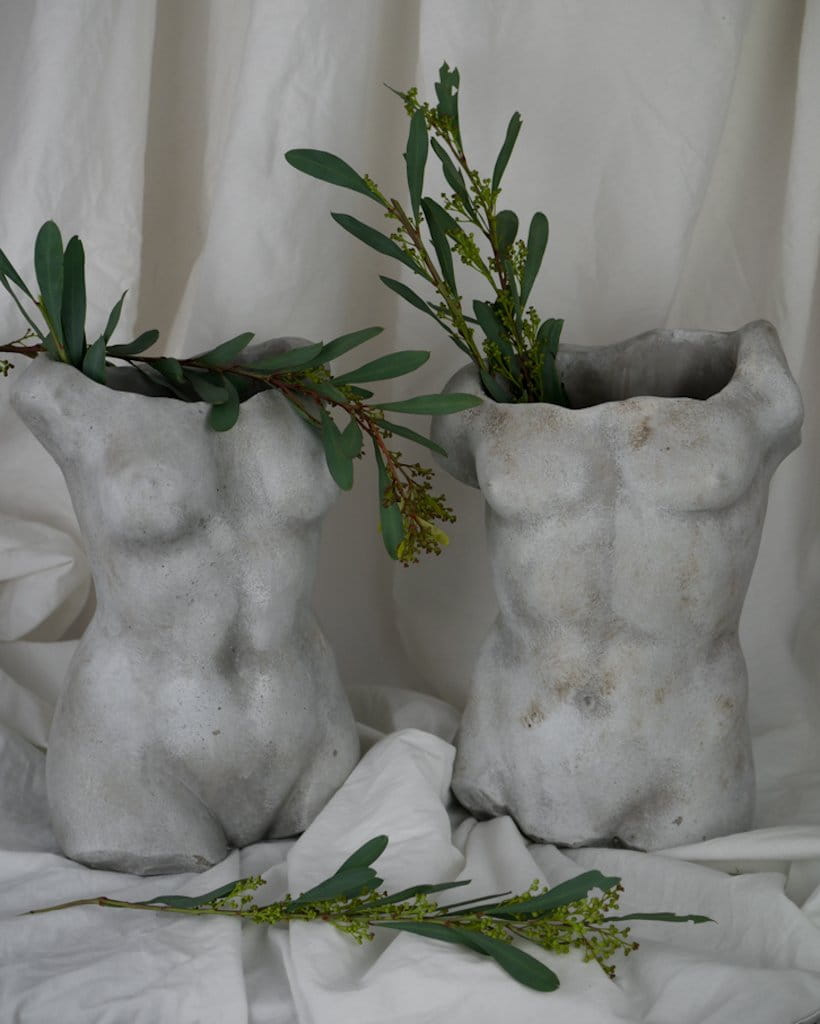 Cementowa osłonka w kształcie męskiego tułowia - praktyczny i oryginalny element dekoracji każdego wnętrza