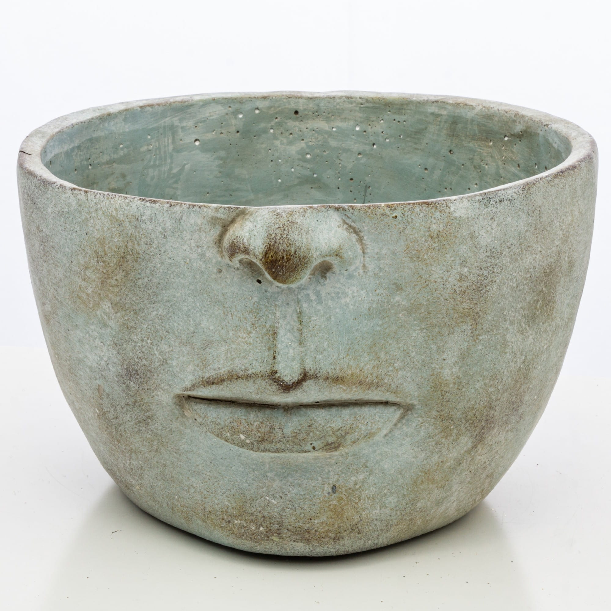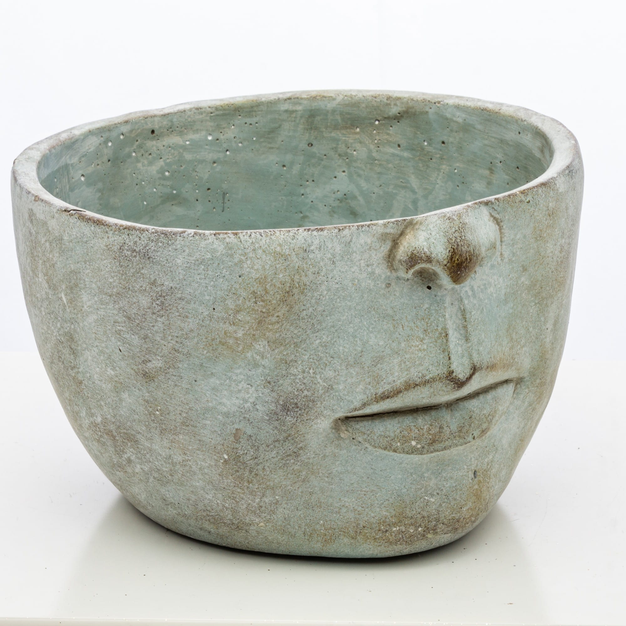 Osłonka w kształcie połowy twarzy z ustami to niebanalny sposób na ozdobienie parapetu, balkonu, jak również ogrodu. Wygląda jak małe dzieło sztuki, ale jest też praktyczną osłonką. Idealnie sprawdzi się do ekspozycji każdej rośliny i podkreśli jej walory estetyczne. Cement, z którego wykonana jest osłonka, to materiał zapewniający niezwykłą trwałość i szlachetny wygląd. Osłonka przeznaczona jest do użytku wewnętrznego.