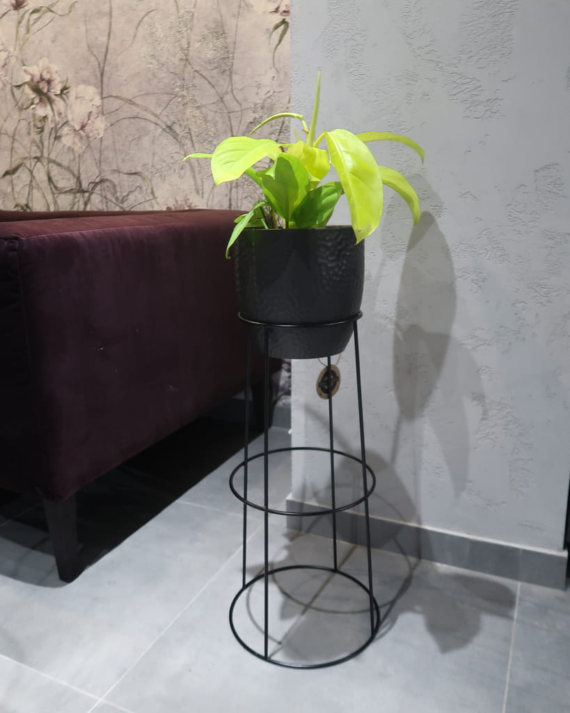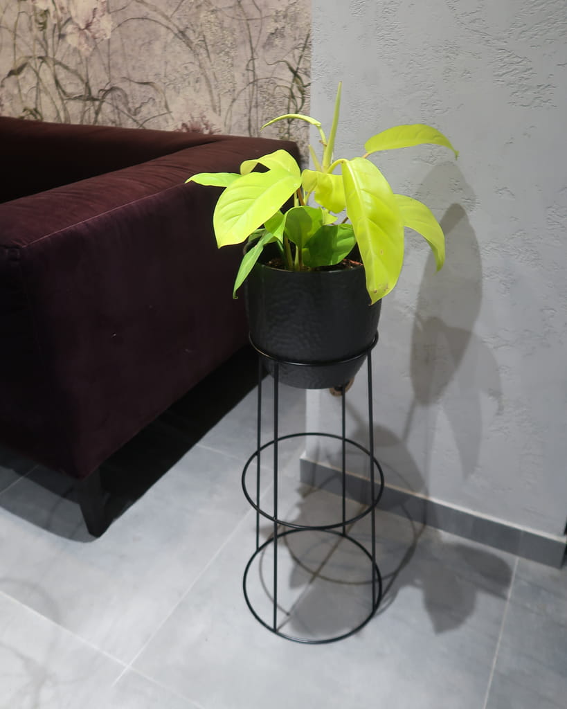 Stojak geometryczny na rośliny doniczkowe z metalu w kolorze czarnym jest elegancką ozdobą wnętrza i praktycznym kwietnikiem. Kształt stojaka przyciąga wzrok oryginalnością, ale i prostotą. Sprawdzi się zarówno we wnętrzu minimalistycznym, jak i w stylu urban jungle.