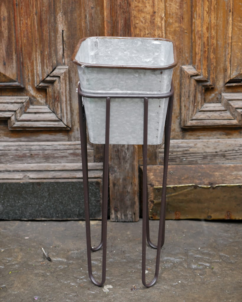Metalowy stojak na rośliny doniczkowe w zestawie z osłonką